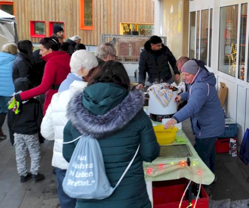 Im BiLo lief da schon das Programm. Es gab Stände einiger Birther mit allerlei interessanten selbsterstellten Artikeln für die Advents- und Weihnachtszeit. Es gab Kaffe und Kuchen, sowie kalte Getränke. Eine Popcorn-Maschine verbreitete ein wenig "Kirmesduft" in den Räumen. Draussen gab es Würstchen vom Grill, frisch gebackene Flammkuchen und unseren Glühwein oder Kakao. Natürlich auch ohne Alkohol.