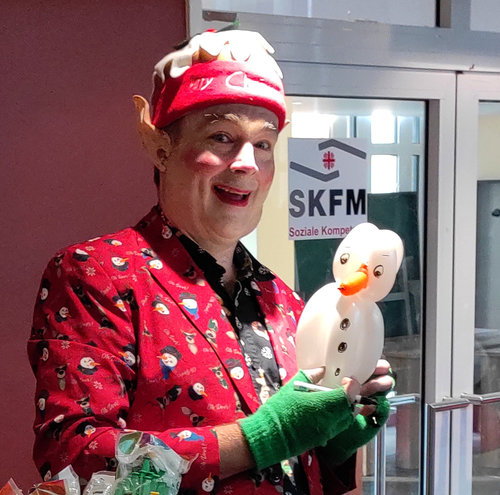 Auf der Bühne im BiLo tanzten die "???" und danach kam auch der Weihnachtsmann. Sein Elf bastelte in der Zwischenzeit Schneemänner aus Luftballons.